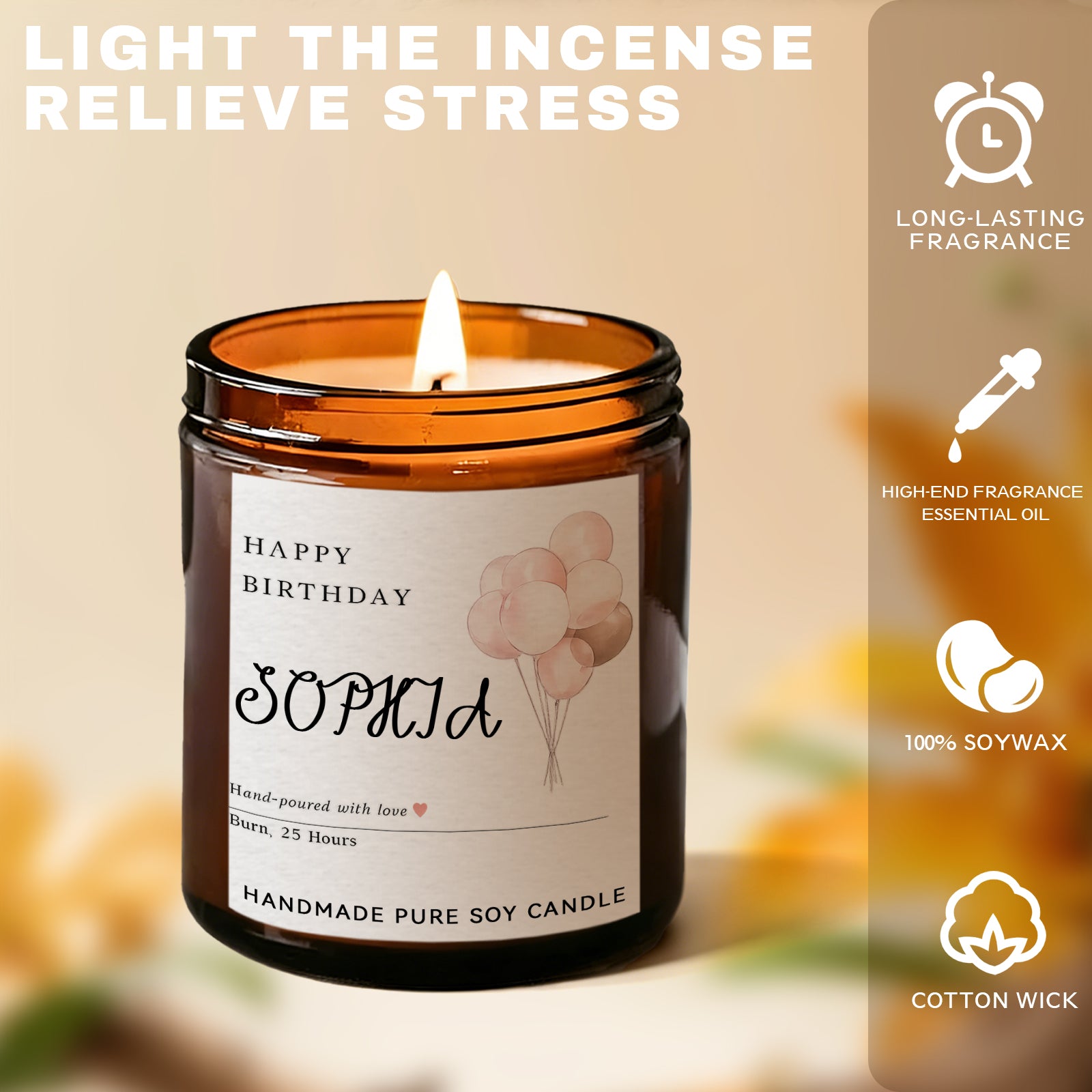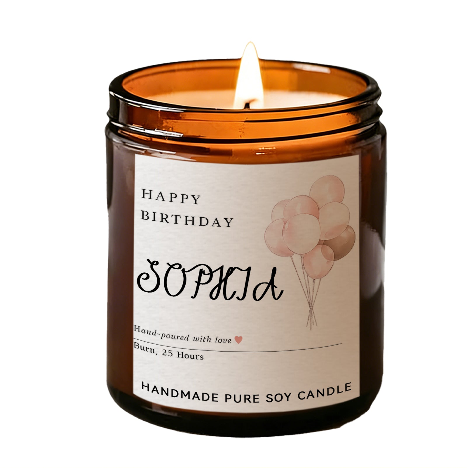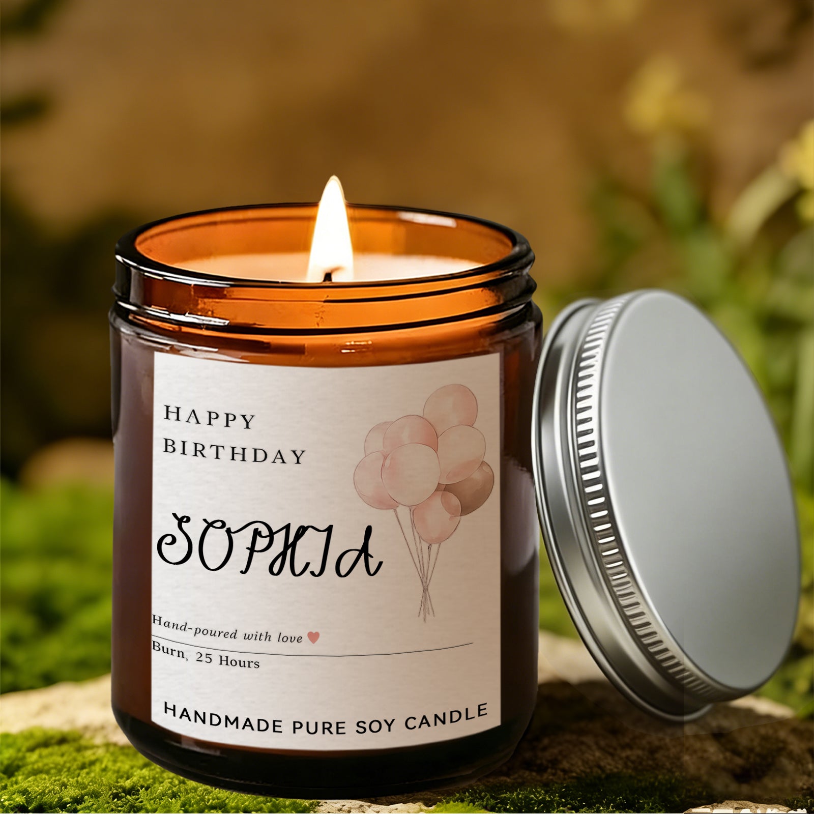 Hand-poured in a stylish amber glass jar, this soy candle birthday gift brings together warm glow, elegant design, and personal meaning. The delicate balloon illustration gives it a sweet and feminine birthday look, making it a beautiful choice for daughters, sisters, best friends, girlfriends, wives, moms, or anyone who loves thoughtful gifts.