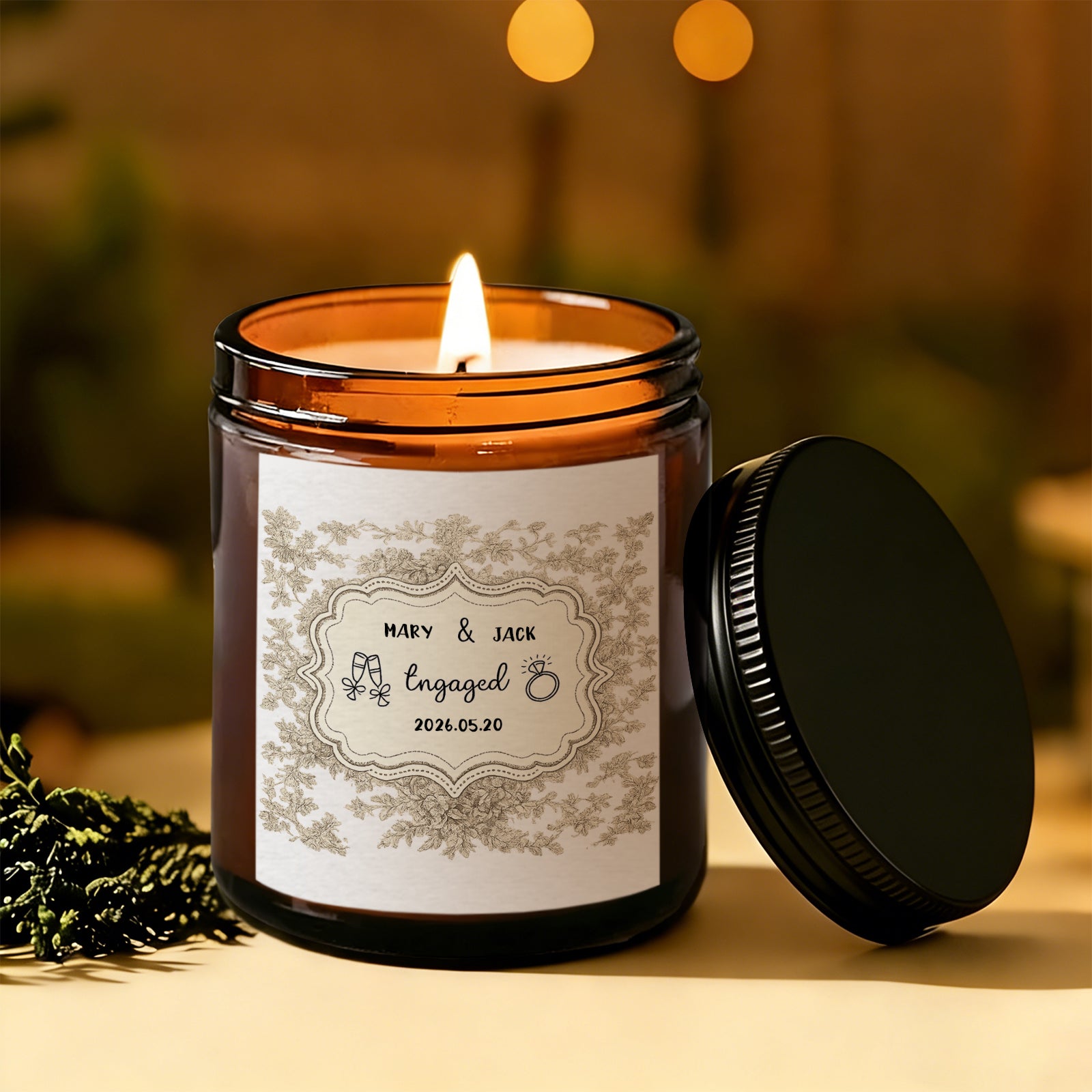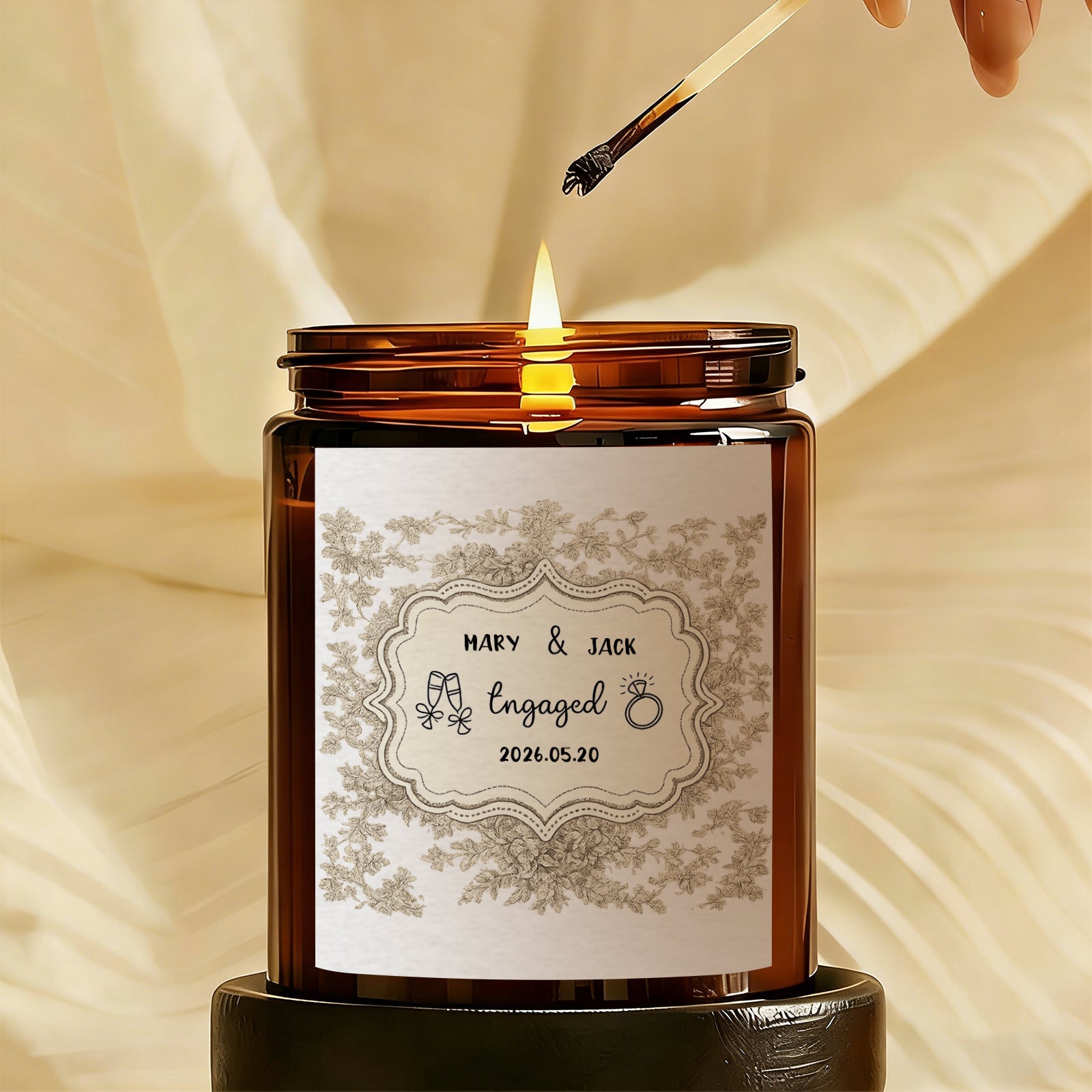 DIYTREE Personalized Engagement Candle – Custom Couple Name & Date Soy Wax Candle Gift for Newly Engaged Couples