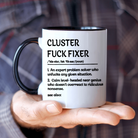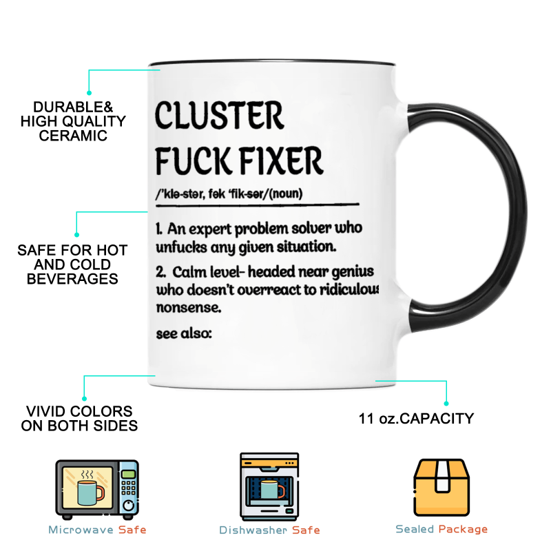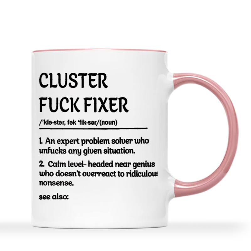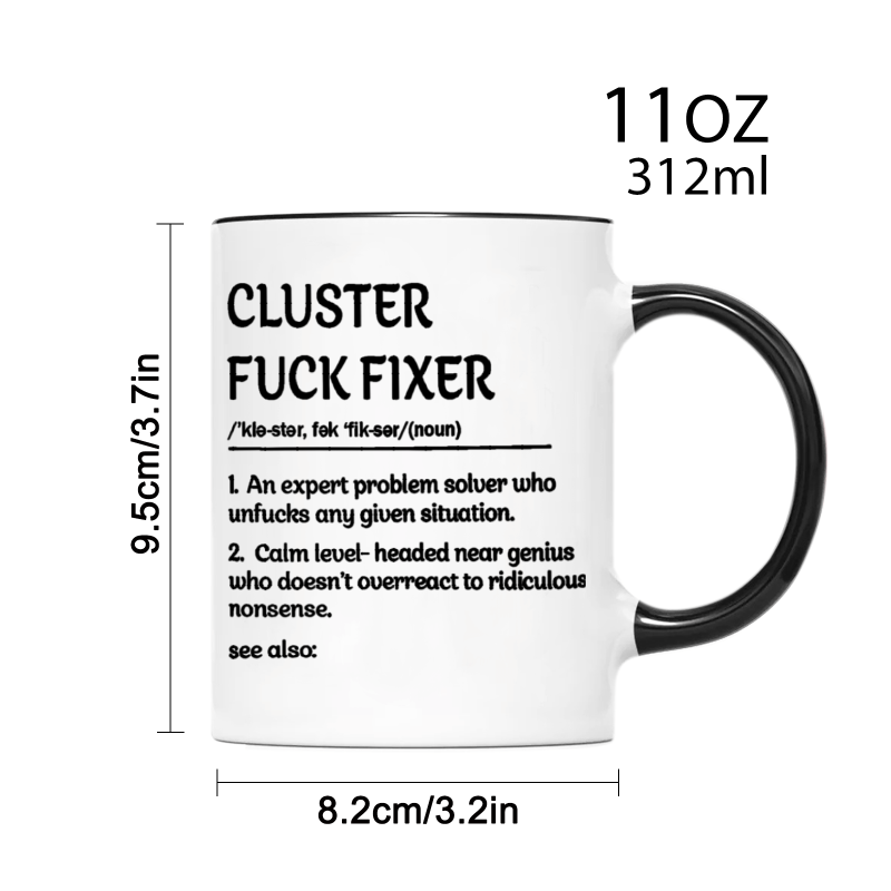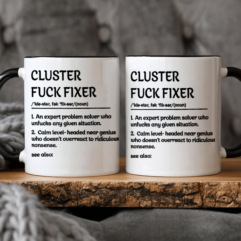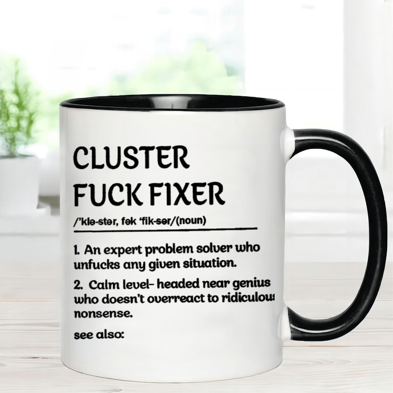 Searching for the perfect gift for your witty boss or multitasking coworker? This Funny Personalized Boss Coffee Mug, featuring the hilarious "Cluster F*ck Fixer" phrase, is a fun and practical way to say “we see you.” Whether you're showing appreciation or bringing humor to the break room, this mug does both.