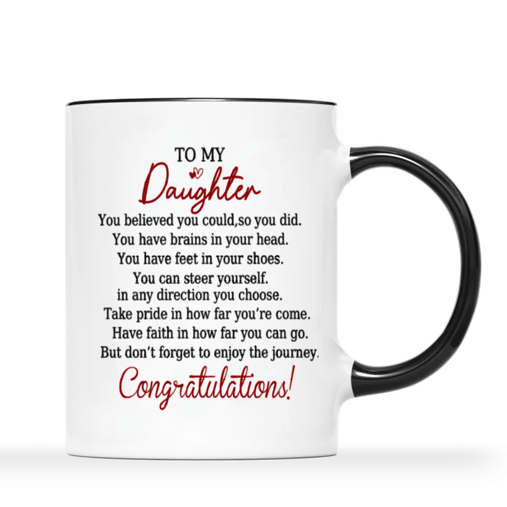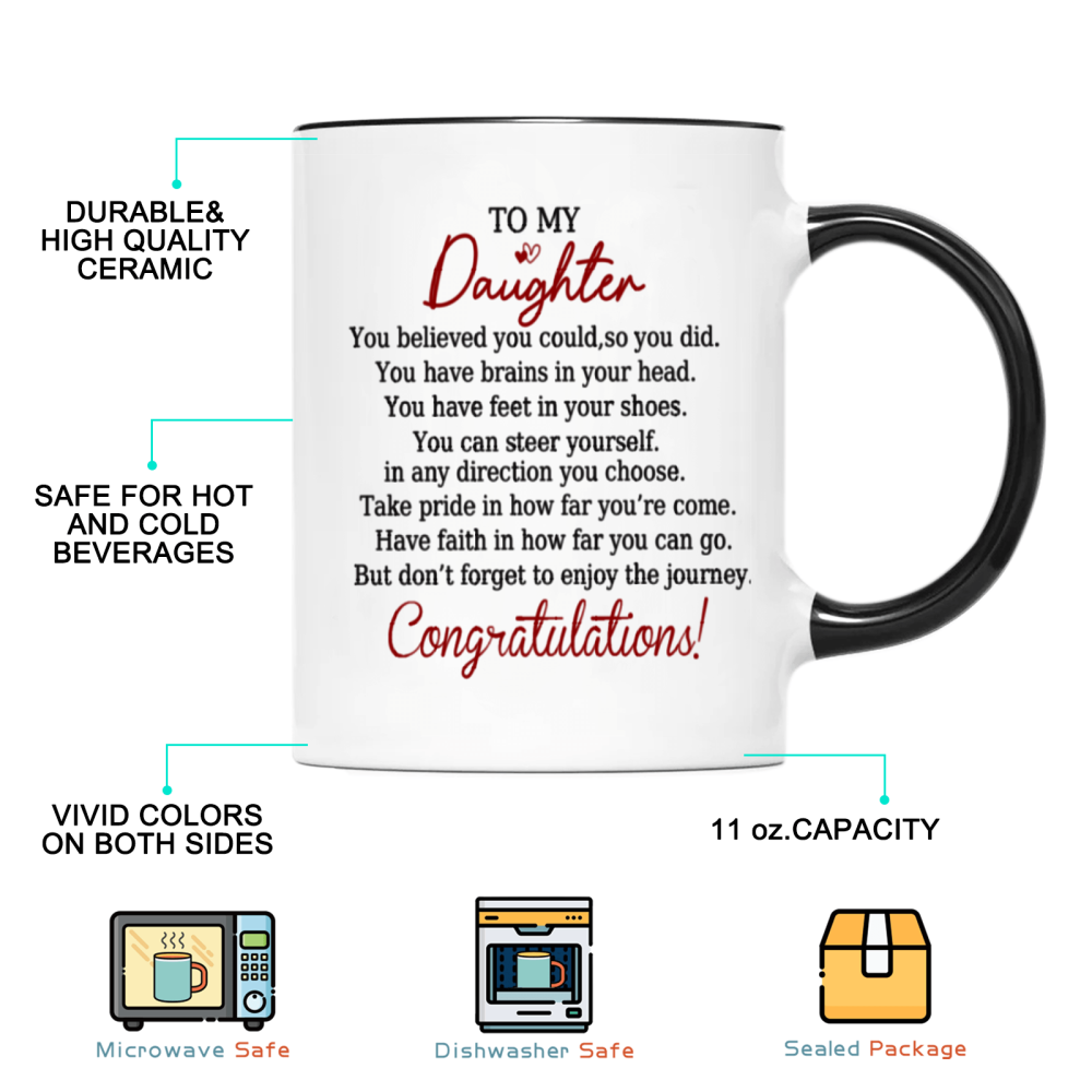 Whether they’re sipping coffee before job interviews or celebrating their big day – this mug will remind them how far they’ve come and how far they’ll go. 🎉