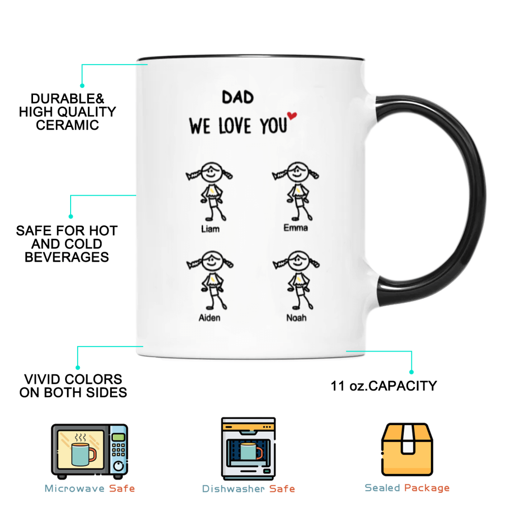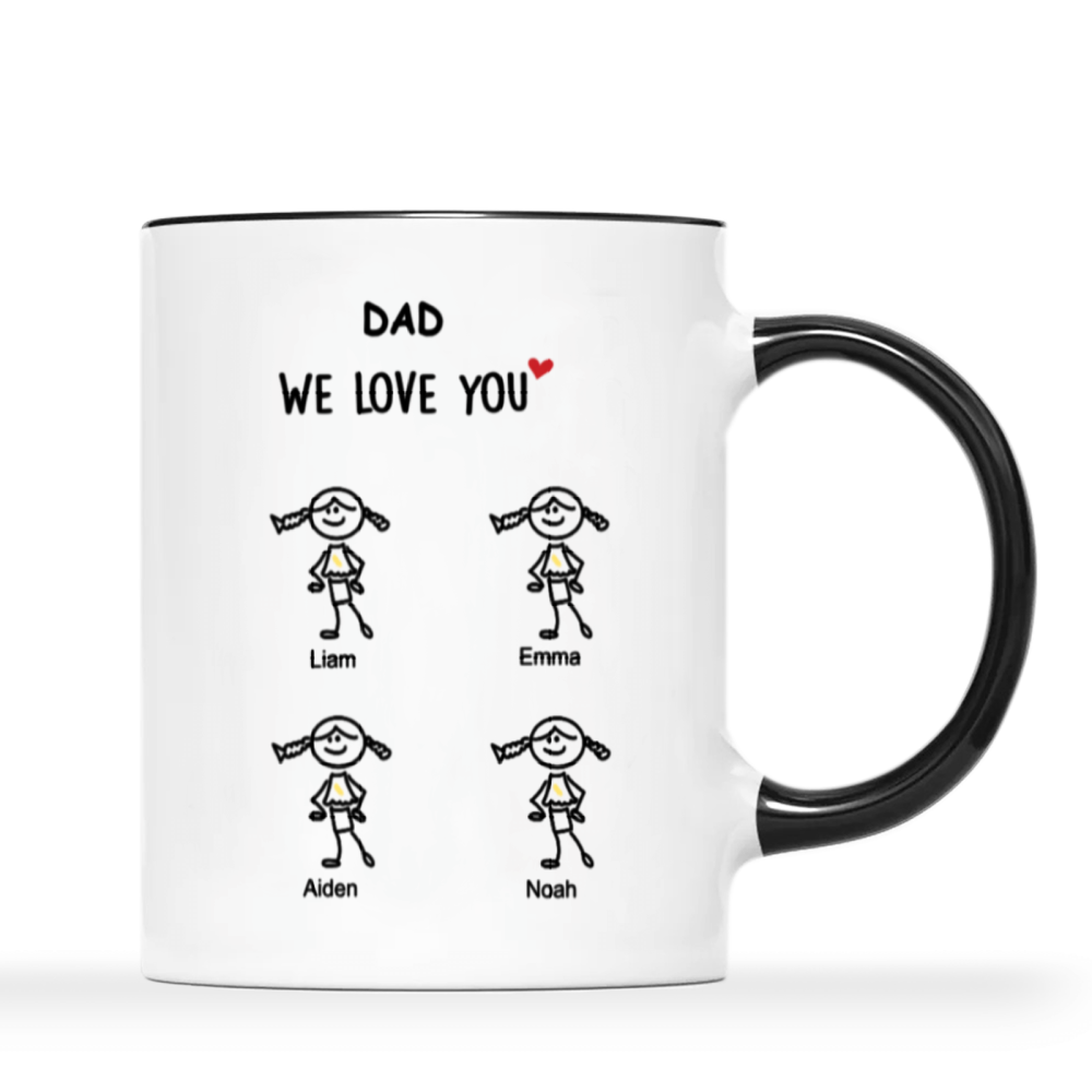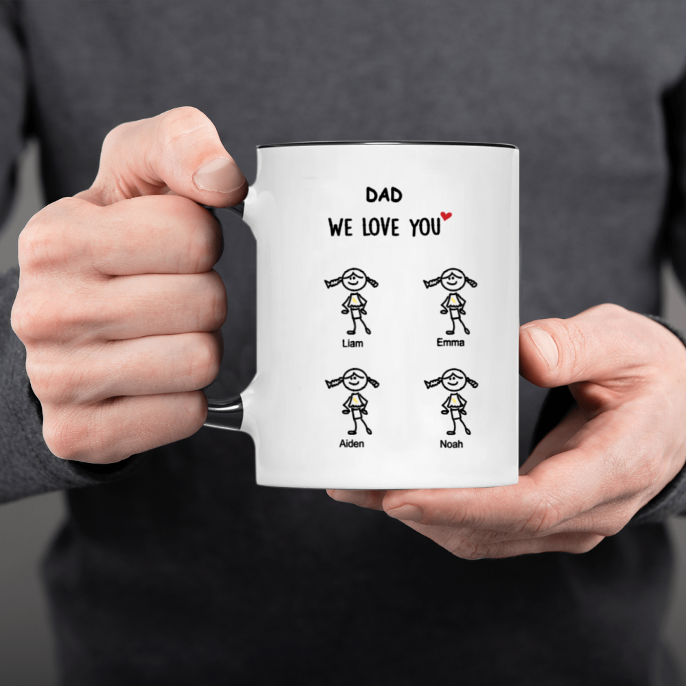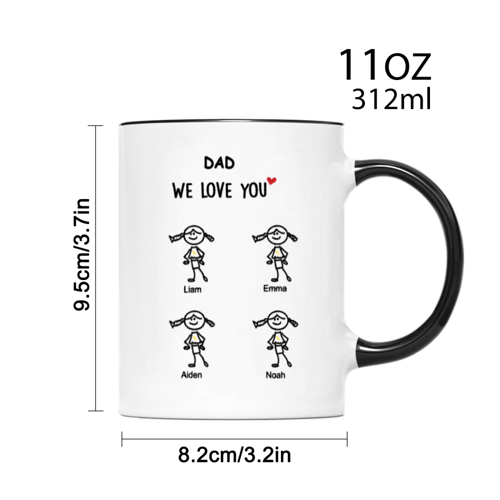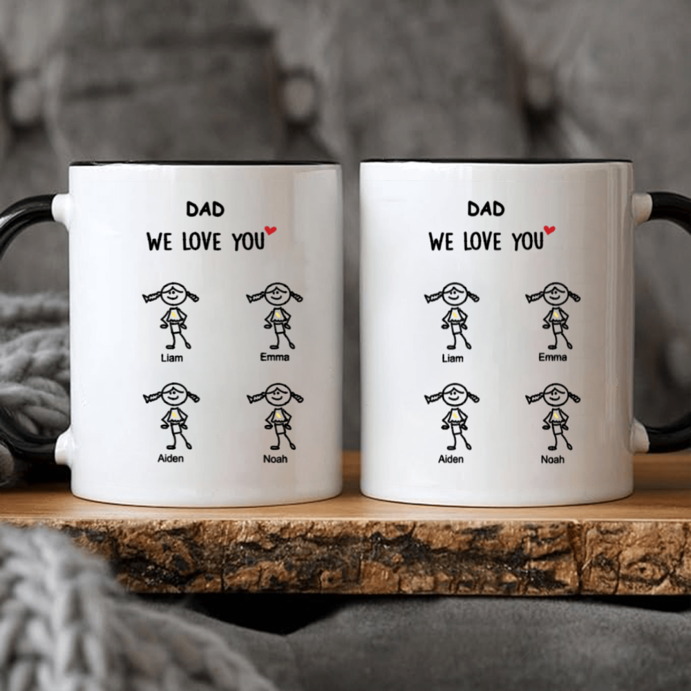 This custom “We Love You” mug turns your little ones’ love into an everyday keepsake. Featuring adorable childlike stick-figure illustrations of each kid — complete with their names and optional hair, outfit, or age details — this mug is the perfect personalized present for any beloved family member.
