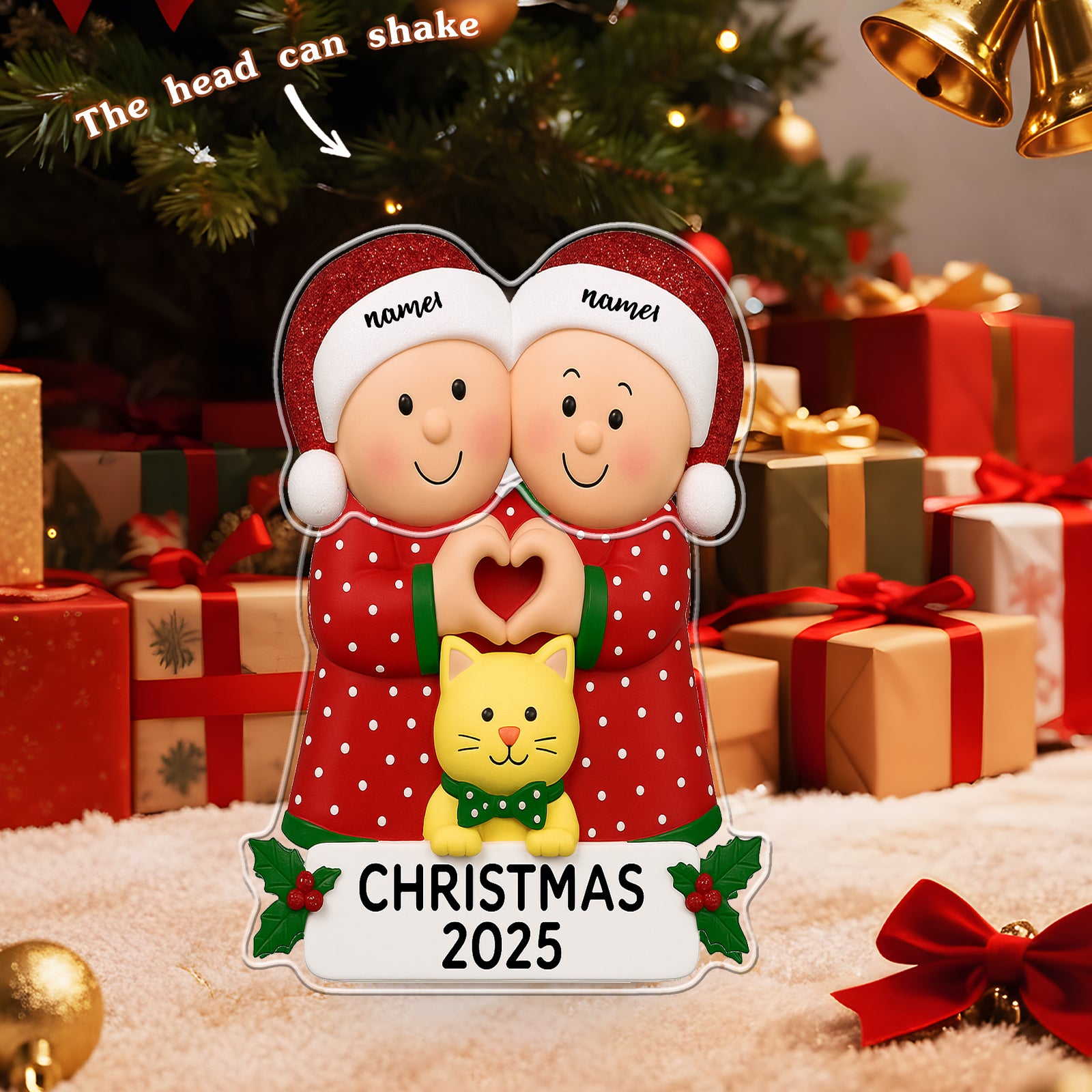 Celebrate the special connection between any two people and their beloved cat this Christmas! The Wobblejoy™ Duo & Cat Love Keepsake is a warm, charming tribute to any two family members, friends, or partners who share their lives and holidays with a cherished cat. Featuring two figures embracing in a festive heart gesture with their cute companion nestled between them, this dynamic piece beautifully symbolizes your shared bond.