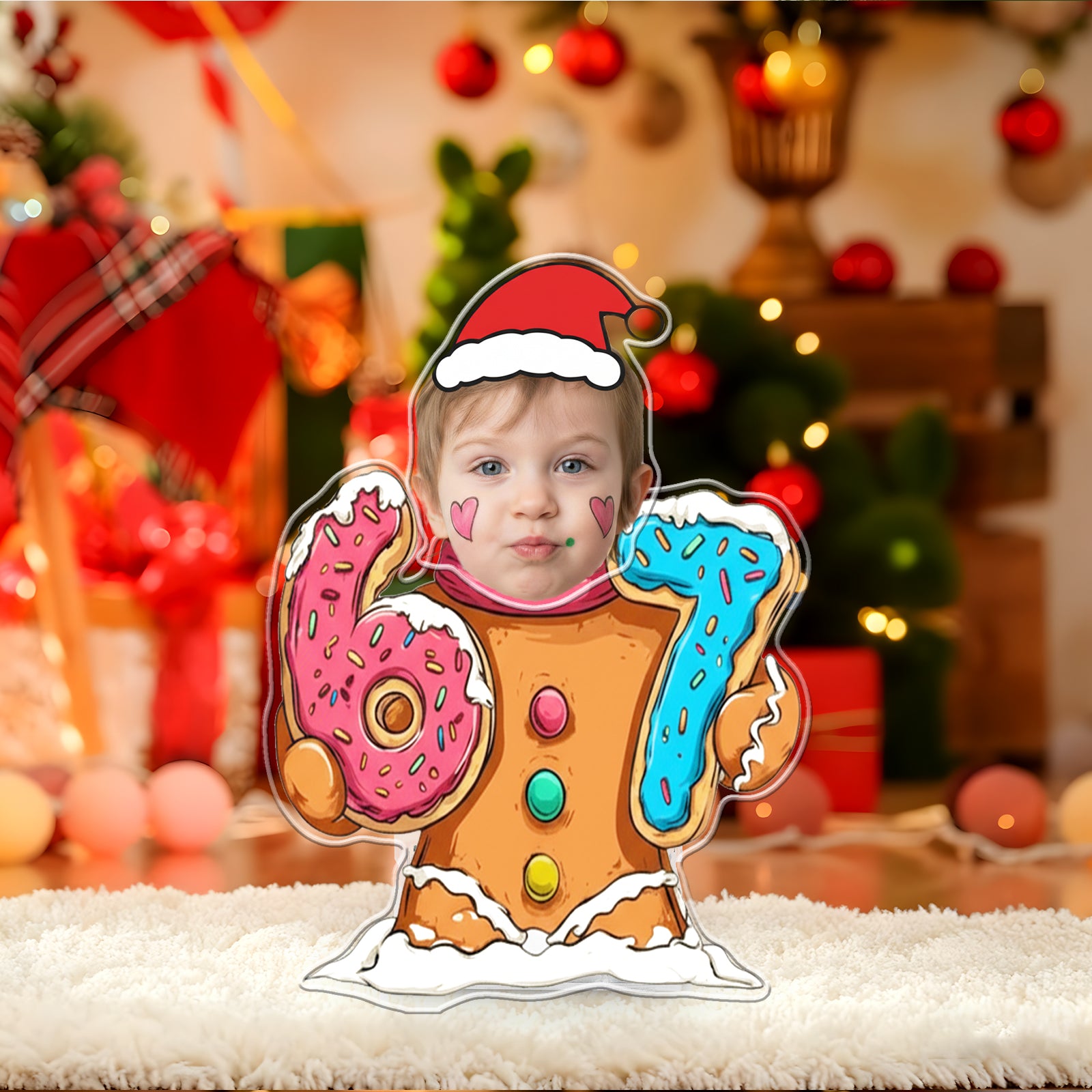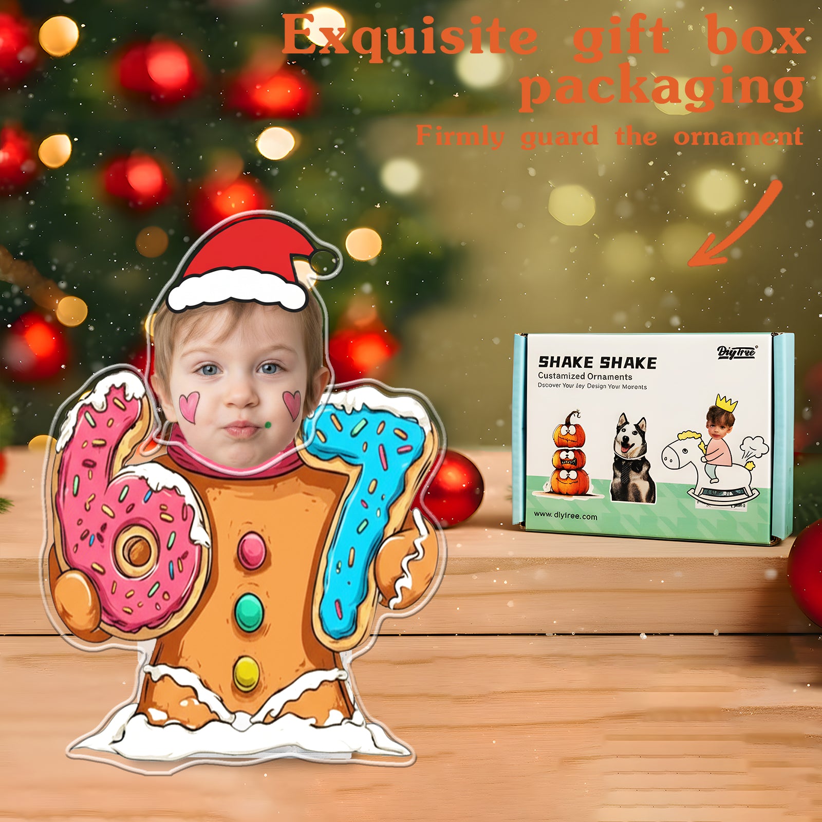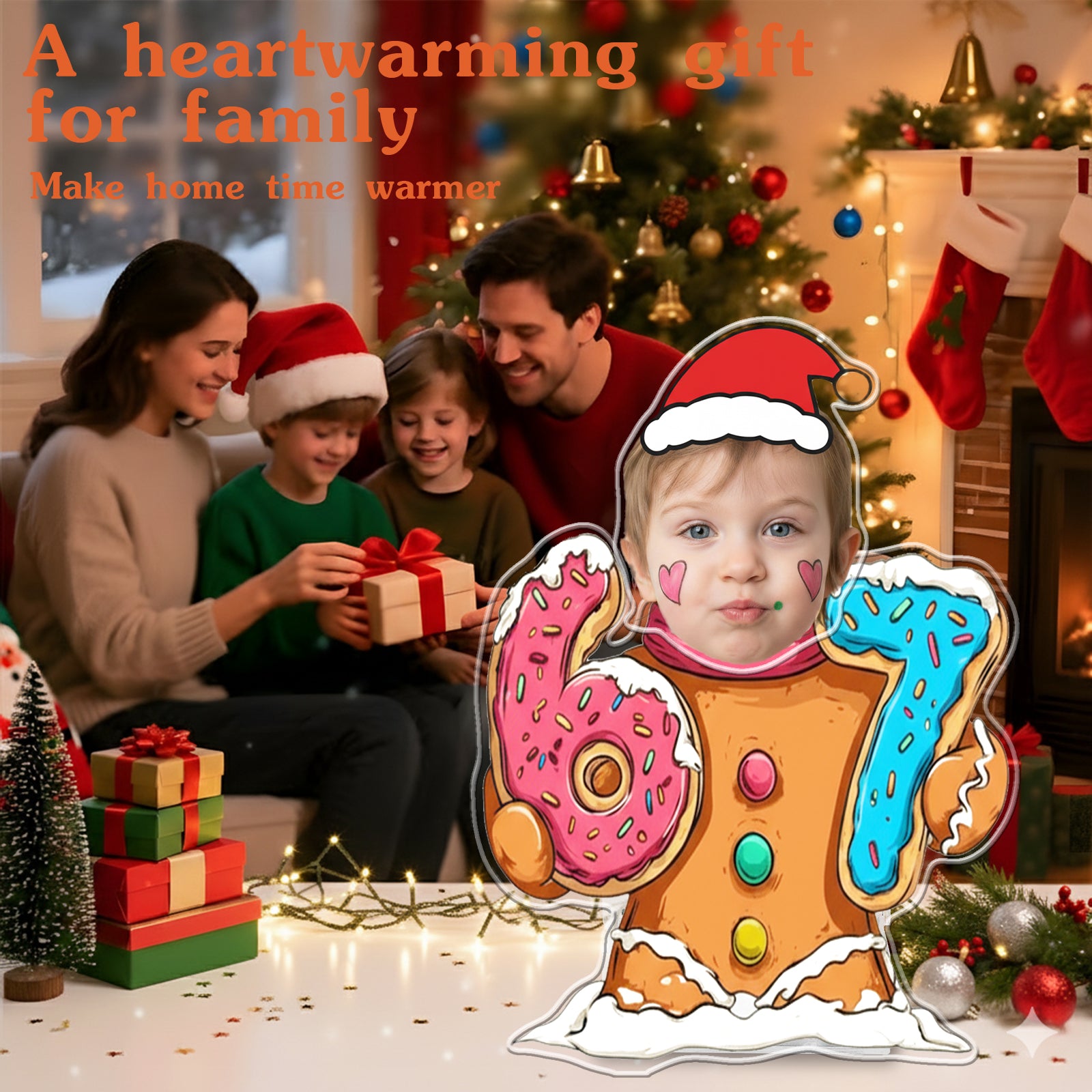 This holiday season, the viral trend just got a delicious upgrade! The Wobblejoy™ 'Sweet 67 Vibe' Keepsake is the ultimate combination of holiday sweetness and internet savvy. This three-dimensional, personalized item features your customized face in a Santa hat, standing as a fun gingerbread figure while proudly holding two massive donut-styled numbers: 6 and 7.