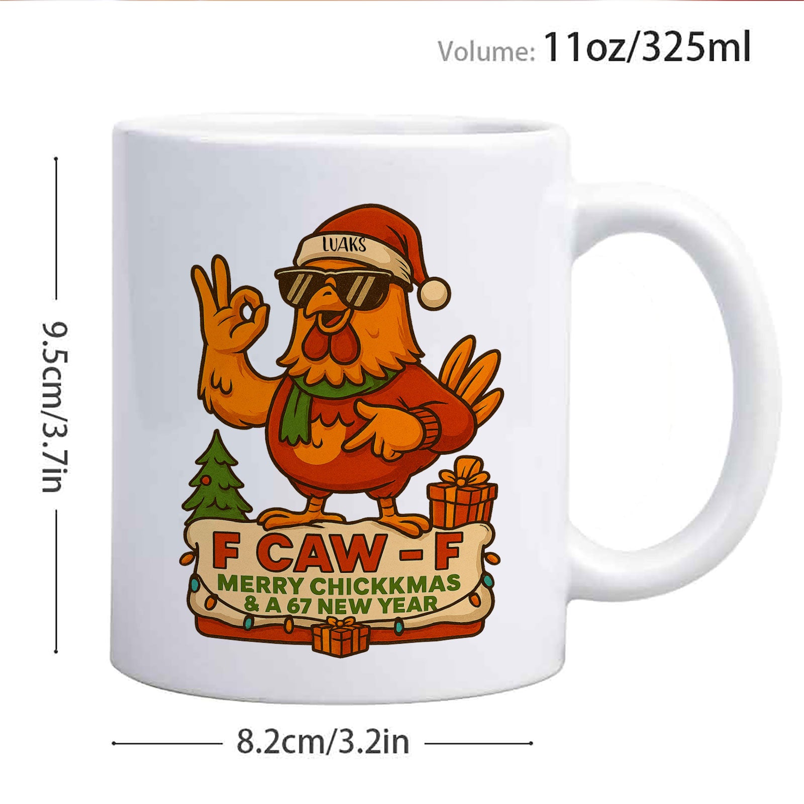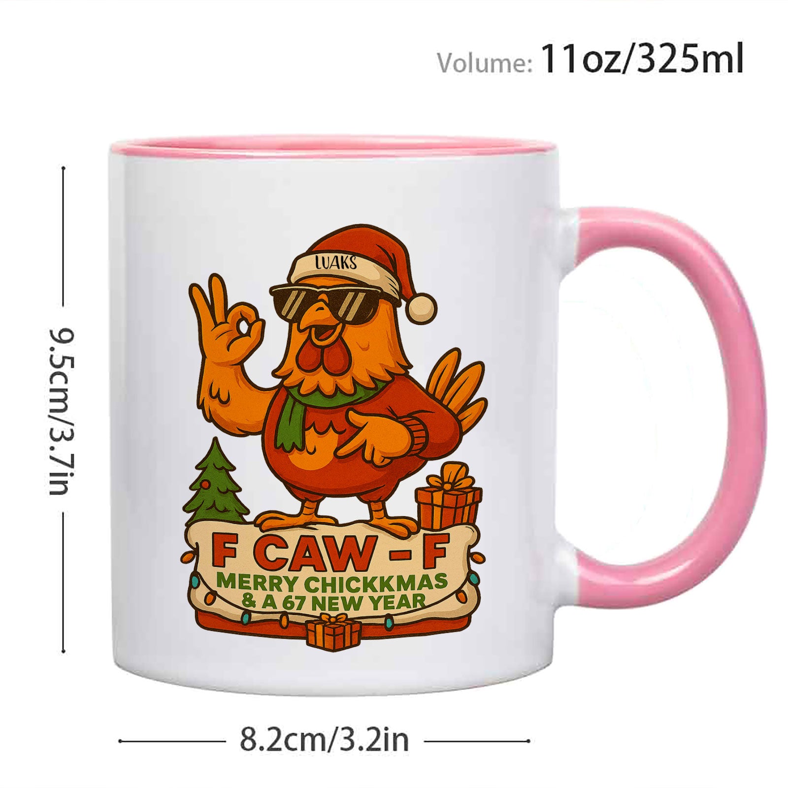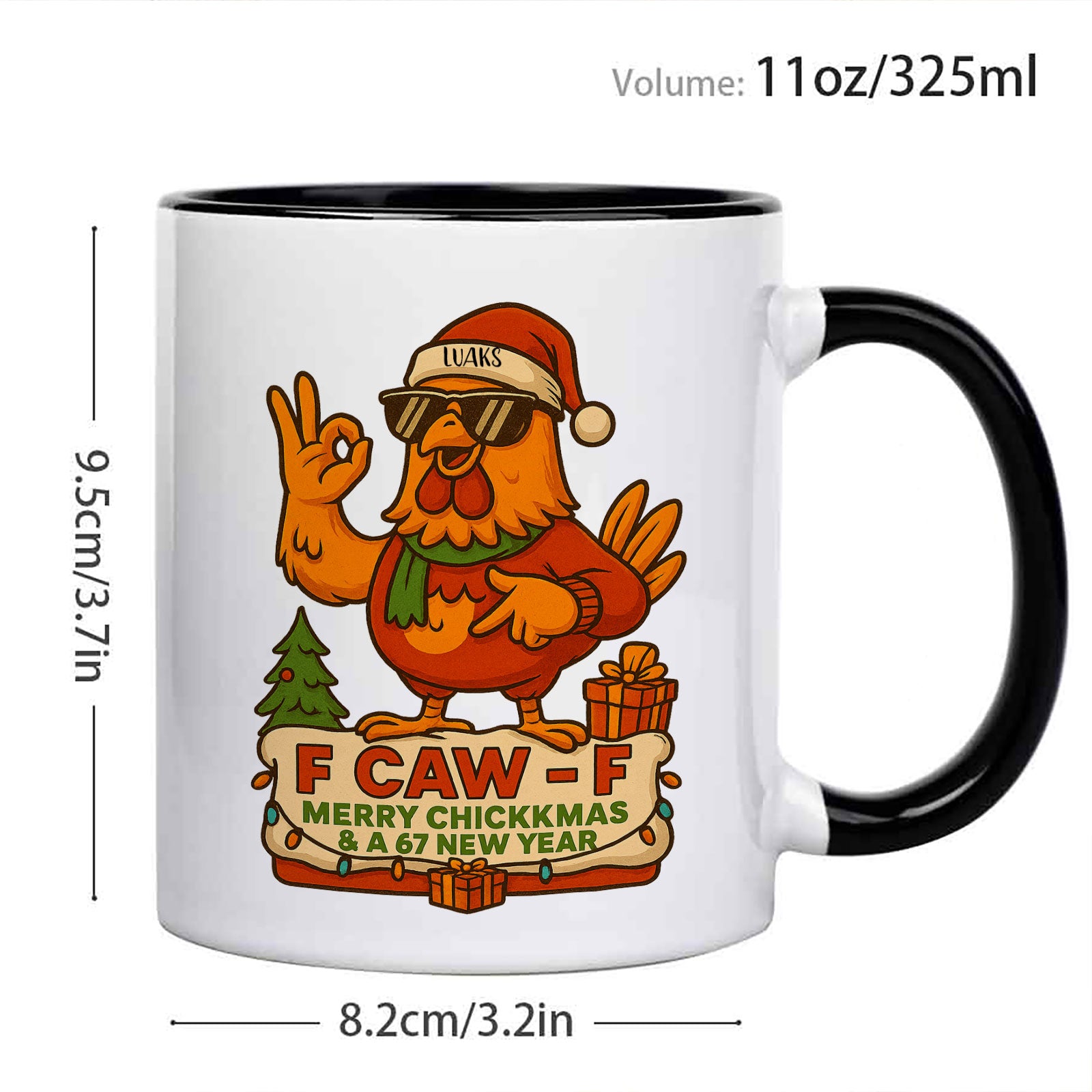 The mug’s bold message, “F CAW F,” along with the holiday cheer of “MERRY CHICKKMAS & A 67 NEW YEAR,” makes this a one-of-a-kind gift. The recipient’s customized name sits proudly on the Santa hat, making them the star of this hilariously real holiday greeting. It’s the ultimate stocking stuffer for the friend or family member who always appreciates a bit of attitude.