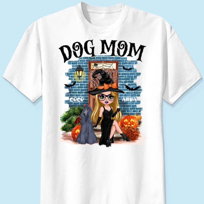 DiyTree —Halloween Witch And Dogs Front Door — Customized T-shirt