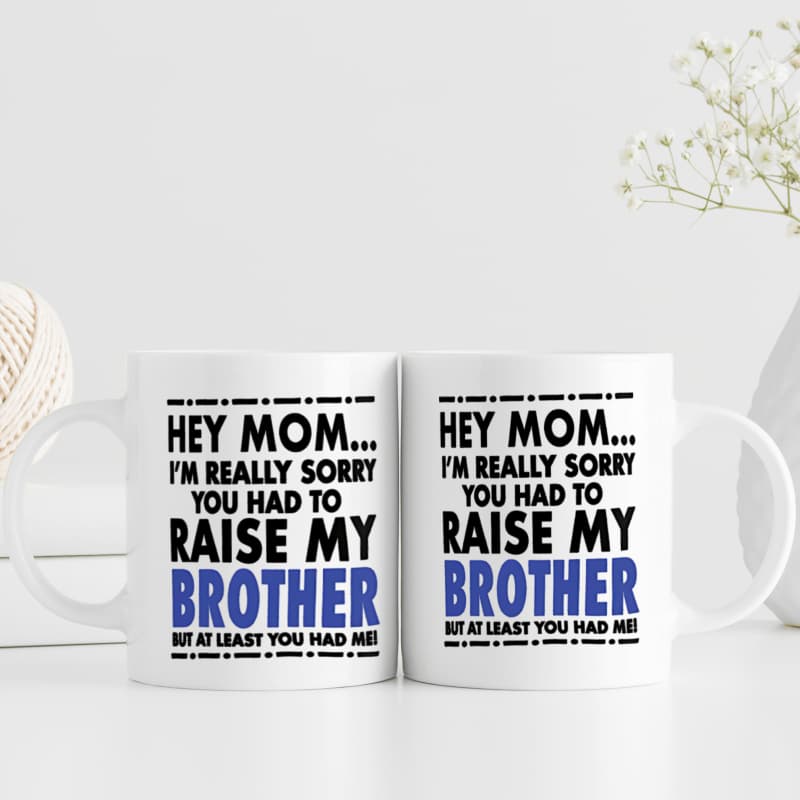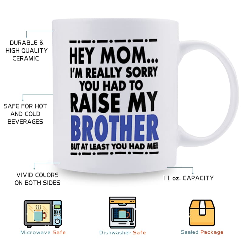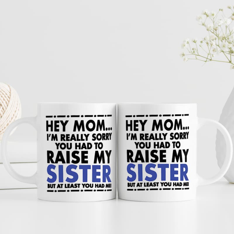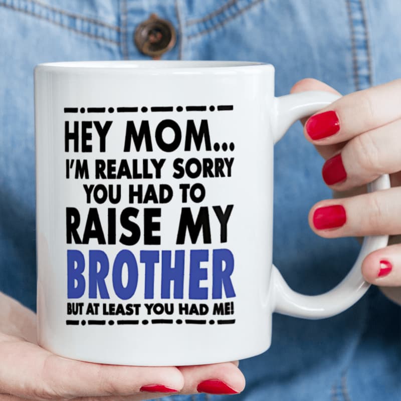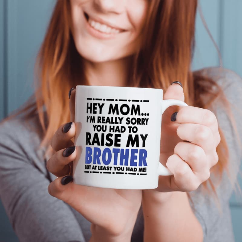 Get ready to make your mom laugh (and maybe cry a little) with this hilarious and personalized mug! Featuring a cheeky message, “HEY MOM... I’m really sorry you had to RAISE MY BUT AT LEAST YOU HAD ME!”, this 11oz ceramic mug is the perfect gift for Mother’s Day, her birthday, or any occasion. Crafted from high-quality materials, it's both durable and microwave-safe, making it a practical yet memorable gift for the special mom in your life.